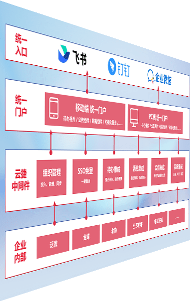 对协作平台提供支持服务,,支持企业应用与协作平台对接,,,包含组织同步、、消息集成、、、、待办集成等。。。支持目前主流的协作平台:钉钉、、企微和飞书。。